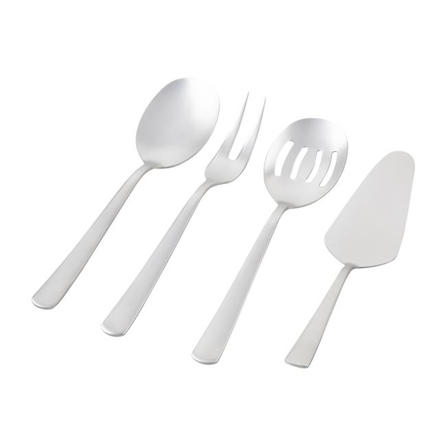 Sofra sunumlarınızda şıklığı ve fonksiyonelliği bir araya getiren bu 4'lü paslanmaz çelik maşa seti, mutfak deneyimlerinizi bir üst seviyeye taşıyor. Dayanıklı paslanmaz çelik malzemeden üretilen mat gümüş maşa seti, yüksek kalitesi ile uzun ömürlü bir kullanım sağlar.