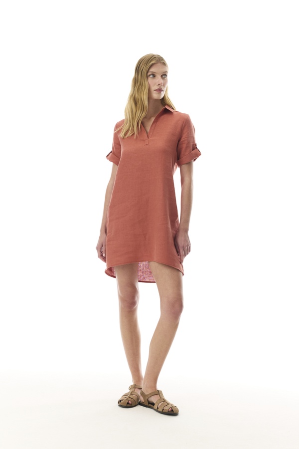 Keten rahatlığı ile hem sıcak havalarda, hem mevsim geçişlerinde cildiniz rahat etsin. A form gömlek yaka mini elbise ile çabasız şıklığı yakalayın. A kesim olmasıyla konforlu bir deneyim sunan elbise, hareket özgürlüğünü de beraberinde getirir. Gömlek yaka tasarımı sayesinde boynunuzda zarif bir siluet oluşturan elbise gardırobunuzun kurtarıcı parçası olacak.