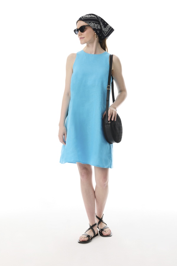 A FORM KOLSUZ KETEN MİNİ ELBİSE