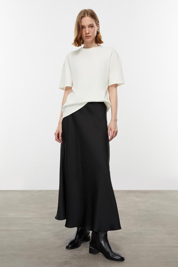 Elegant tavrını yansıtacak Refined seçkisini keşfet. Saten görünümlü eşsiz dokuya sahip midi etek, siyah rengiyle kombinlerine zarafet katacak. Çizme kombinlerine dahile edebileceğin model, Mudo'da.