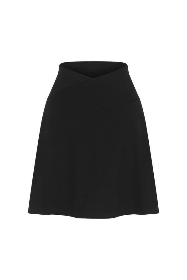 Klasik tasarımları küçük detaylarla farklılaştıran siyah mini kloş etek, v kesimiyle yüksek bel mini eteğe yeni bir yorum getiriyor. Her tarza uygun kombinlenebilir mini eteği ince siyah çoraplarla kışlık dolabına dahil edebilir, spor ayakkabı ve loafer ayakkabılar ile yazın ofis şıklığını yorumlayabilirsin.