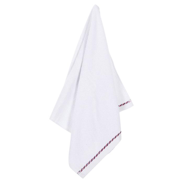 Banyolara marine esintisi taşıyacak iplik burgu bordür detaylı pirinç dokuma el-yüz havlusu. Rahat asılabilmesi için bir kenarında kumaş askı yeri detayı bulunmaktadır.