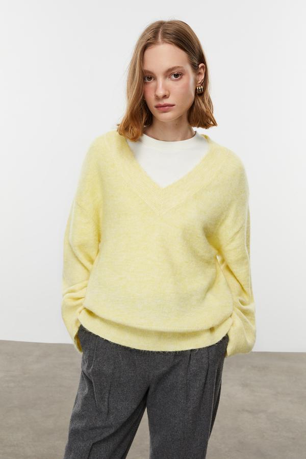 ALPAKA YÜN KARIŞIMLI V YAKA TRİKO KAZAK