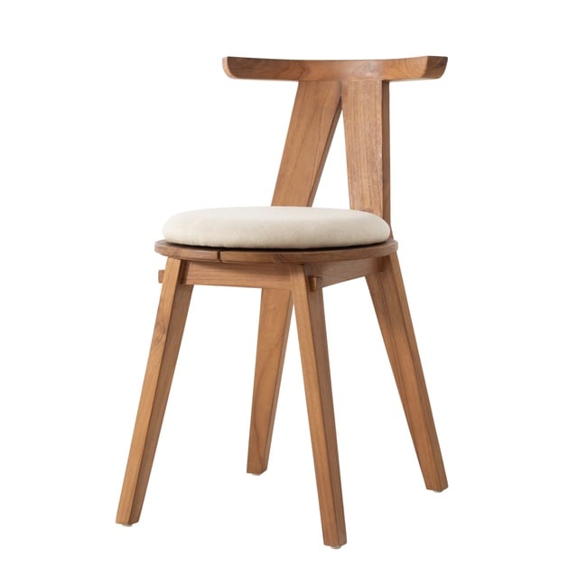 Pürüzsüz yüzeyli gövdesi, sırt kısmındaki geometrik formuyla öne çıkarken, genel tasarımına modern bir çizgi sunar. Konforu ön planda tutan yaklaşımı, oturma alanındaki yumuşak dokulu ve yuvarlak formdaki beyaz minderi ile tamamlanır. Bu kontrast, sandalyenin görsel cazibesini artırır ve rahat bir kullanım sunar. Yemek masası etrafında bir takım olarak kullanılabileceği gibi, bir okuma köşesinde, yatak odasında veya antrede tek başına şık bir tamamlayıcı olarak da yerini alarak bulunduğu ortama değer katar. Fonksiyonelliği ve estetiği buluşturan yapısıyla evinizin beğenilen parçalarından biri olabilir.