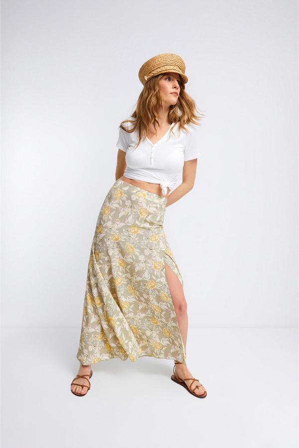 Midi etek modelleri arasında kesimi ve pastel tonlara sahip retro desenleriyle dikkat çeken midi etek, kloş kesimiyle hareketlerinize ahenk katacak. Düz taban sandaletler ve terliklerle birlikte kombinleyerek modern bir görünümü yakalayabileceğiniz midi eteği, basic t-shirtlerle tamamlayabilirsiniz.