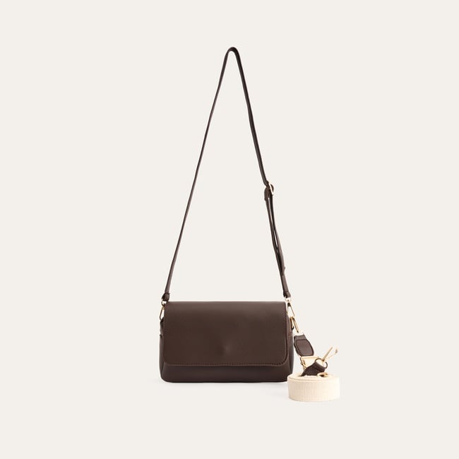Tasarımın odak noktasını oluşturan ayarlanabilir askı detayı ve üzerindeki altın renkli metal aksesuarlar, çantaya şık bir detay katar. Düz hatlara sahip dikdörtgen formu, ona hem klasik hem de modern bir estetik sunar. Kaliteli ve dayanıklı bir hissiyat veren dokulu yüzeyi, görsel çekiciliğinin yanı sıra uzun ömürlü kullanım imkanı sunar. Bu minimalist çanta, farklı kombinlerle uyum sağlayarak stilinizi tamamlar.