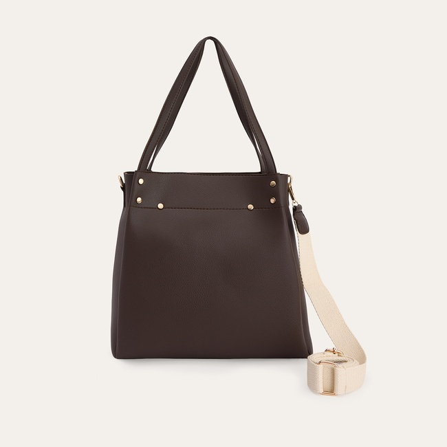 Hafif taneli ve mat yüzeyli dokusu, çantaya sofistike bir karakter kazandırır. Tok ve yapısal formu, eşyalarınızı taşırken bile görünümünü korumasını sağlar. Genişliği ayarlanabilen omuz askısı, kişisel tercihinize göre konforlu bir taşıma deneyimi sunar. Tasarımın odağındaki parlak aksesuarlar ve toka detayı, sade silüete incelikli bir hareket katar. Fermuarlı ana bölmesi ise temel ihtiyaçlarınız için güvenli ve düzenli bir saklama alanı yaratarak gün boyu organize olmanıza yardımcı olur. Bu çok yönlü tasarım, jean pantolon ve basic bir tişörtten oluşan rahat bir kombine şıklık katarken, şık bir elbiseyle de uyum yakalar.