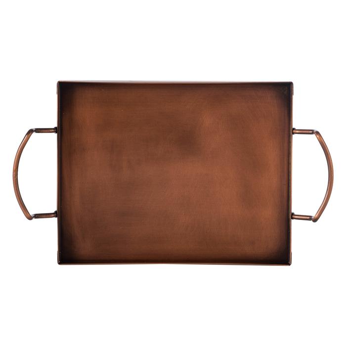 Galvaniz malzemeden üretilmiş bakır rengindeki dikdörtgen tepsi hem şık hemde fonksiyonel.