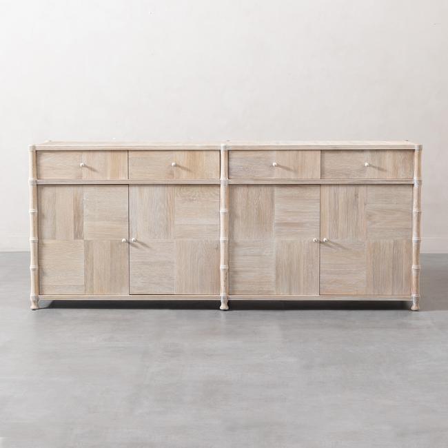 Hasır desenli ön yüzeyi konsola özgün bir karakter katarken, bambu detaylı ayakları tasarımın doğal estetiğini vurgular. Yuvarlak kulplar, tasarımın yumuşak hatlarını tamamlar. Çekmeceli ve dolaplı yapısı sayesinde eşyalarınız için düzenli ve pratik bir saklama alanı sunar. Salon, antre veya yatak odası gibi farklı alanlarda kullanıma uygun olan bu konsol, minimalist dekorasyonlara sıcak bir dokunuş ekler.