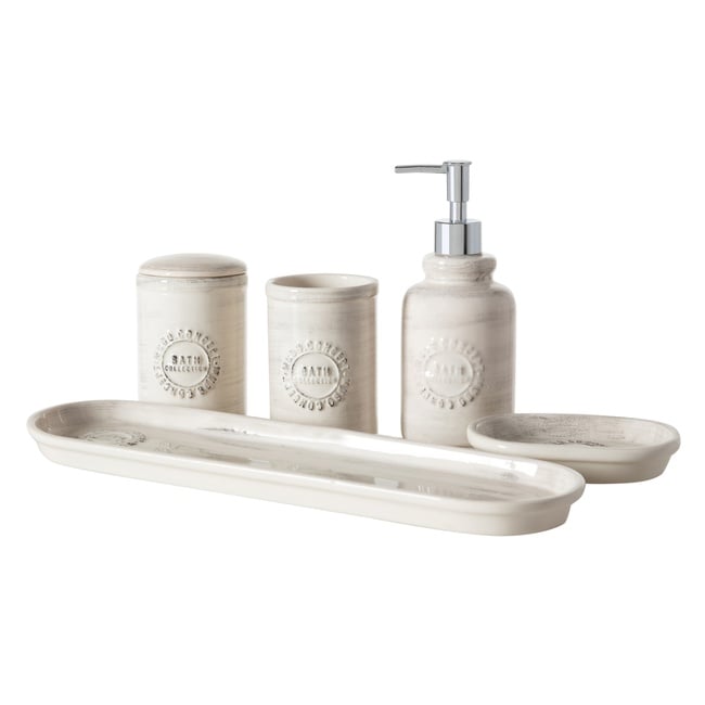 Barnes Banyo Seti, %100 seramikten üretilmiş olup vintage eskitme görünümlü tasarımında retro çizgilere yer veriyor. Set içerisinde yer alan sıvı sabunluk, pamukluk, diş macunluk, sabunluk ve aksesuar tepsisiyle birlikte kullanabileceğiniz 5 parçalı banyo seti, banyo dekorasyonunuza şık bir dokunuş katacak. Banyonuzun havasını değiştirece Barnes banyo aksesuarları serisi içinde tuvalet fırçalık ve çöp kovası modelleriyle siz de banyo takımınızı oluşturabilirsiniz.
