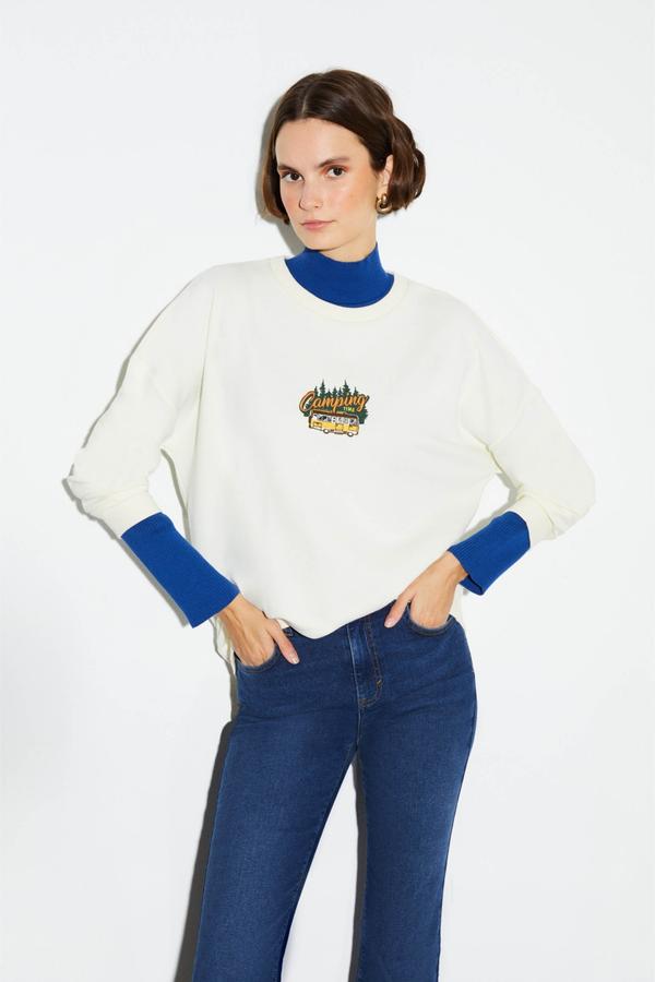 Mudo sweatshirt modelleriyle comfort görünümünü tamamla. Pamuk karışımlı kumaştan üretilen, bisiklet yaka baskılı uzun kollu sweatshirt modelini jean pantolonlar, eşofman altları ile kombinleyebilirsin. Seçeceğin aksesuar arasında örgü bere modelleri, rahat tavrına renk katacaktır.