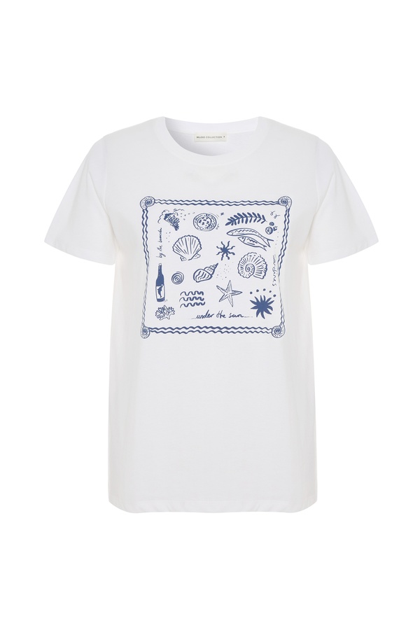 Sade ancak etkili bir görünüm elde etmek isteyenler için tasarlanan baskılı bisiklet yaka t-shirt modeli, doğal görünümü ve özgün baskısıyla tarzınızda fark yaratmanıza yardımcı oluyor. Detaylara dikkat edenler için özenle tasarlanan t-shirt, klasik bisiklet yakası sayesinde zamansız bir kullanımı da beraberinde getiriyor. Gün boyu konforlu bir deneyim sunacak olan t-shirt modeli, marin temasıyla yazın sıcak günlerinin enerjisini yansıtıyor.