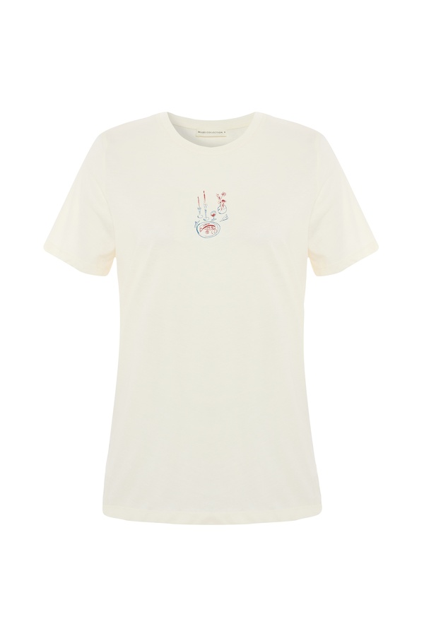 BASKILI BİSİKLET YAKA T-SHIRT