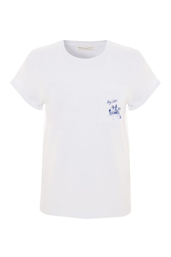 BASKILI BİSİKLET YAKA T-SHIRT
