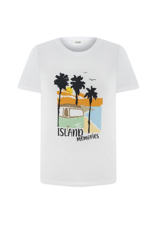 Mudo tişört modelleri ile rahat tarzını yansıt. %100 pamuk kumaştan üretilen, bu sayede cildinin nefes almasını sağlayacak baskılı bisiklet yaka tişört modelini jean şort, mini kot eteklerinle kombinleyebilirsin.