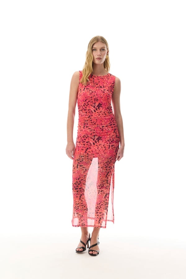 Stilini güçlü bir şekilde yansıtmak isteyenlerin favorisi olacak baskılı kolsuz dar kesim midi elbise ile tanışın. Enerjik renk tonu, dikkat çekici baskıları ve vücuda oturan dar kesimiyle dikkat çeken bu midi elbise ile her adımda fark yaratabilirsiniz. Vücut hatlarını zarifçe ortaya çıkararak feminen bir duruş sergileyen elbiseyi sneakerlar ile spor bir hale getirebilir ya da topuklu ayakkabılar ile sofistike bir görünüm yakalayabilirsiniz.