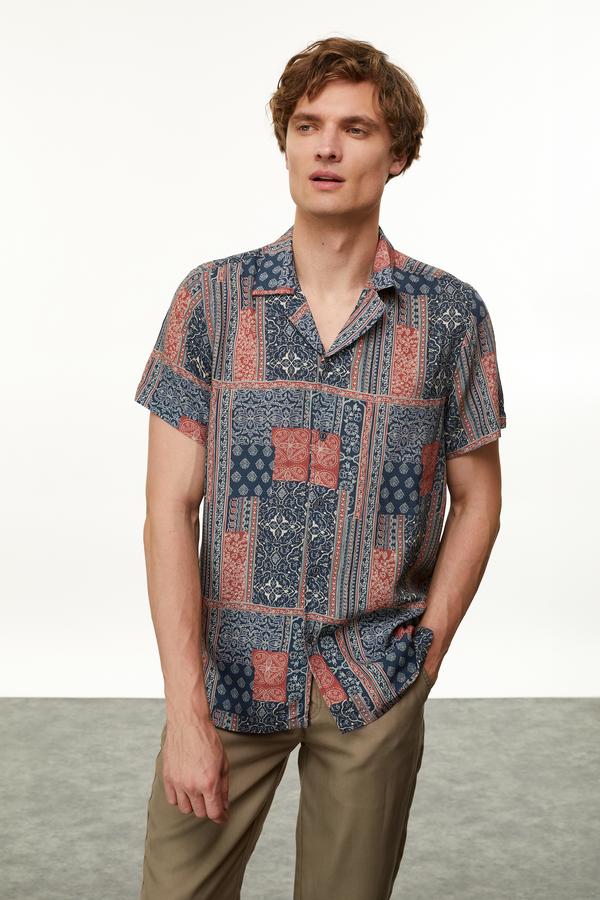 Viskoz karışımlı kumaştan üretilen regular fit gömlek modelleri ile istediğiniz her tarzı yaratmanız mümkün. Ofis ve günlük şıklığına eşlik edecek erkek baskılı regular fit gömlek modeli, şıklığının yanı sıra konforlu bir deneyim sunuyor. Şortlar ile kombinleyerek sporlaştırabileceğiniz gibi, kumaş pantolon ile şık ve tarz bir duruş yaratmanız da mümkün.
