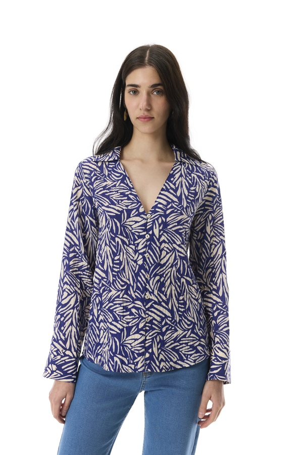 Baskılı v yaka gömlek bluz ile tarzına hareket kat! Gömlek görünümü, v yaka tasarımı ve baskılı kumaşı sayesinde günlük kombinlerinde bile dinamik bir hava yaratmanı sağlayacak gömlek bluz, rahat kesimi ile gün boyu konfor ve hareket özgürlüğü sağlayacak. Jean pantolonlar ile spor bir görünüm elde edebilir ya da midi etekler ile ofis şıklığını yakalayabilirsin.