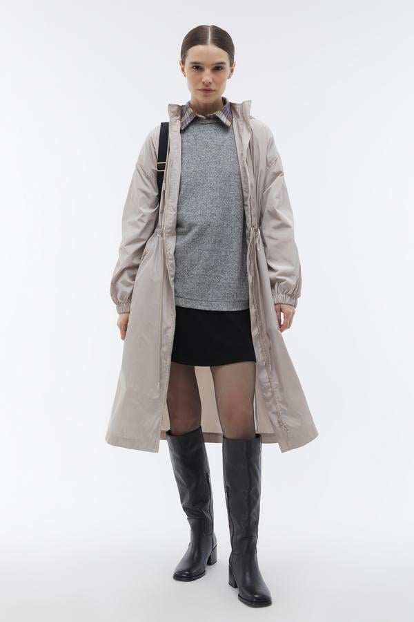 Mudo'nun yeni kış sezonu ürünleriyle kombinlerin tamamlanacak. Stil ve fonksiyonelliği bir arada arayanlar için beli baplamalı kapüşonlu uzun yağmurluk en doğru tercih olacak. Modern tasarımı ve detayları ile yağmurlu havalarda bile göz alıcı bir görünüm sunan yağmurluk, mükemmel koruması ve şık görüntüsü ile tarzınızı ön plana çıkaracak. Zamansız kombinlerin yolu Mudo'da.