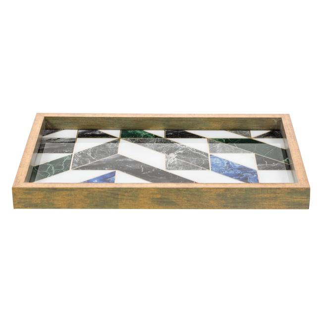 Dekoratif tepsiler ile dekorasyonda Mudo dokunuşu! Keskin geometrik desenleri modern çizgilerle tasarımında barındıran Beryl Dekoratif Tepsi, tabanı polyesterden üretilen ürünün iki farklı ölçü seçeneği olup, üzerindeki cam kaplamasıyla dikkat çekiyor.