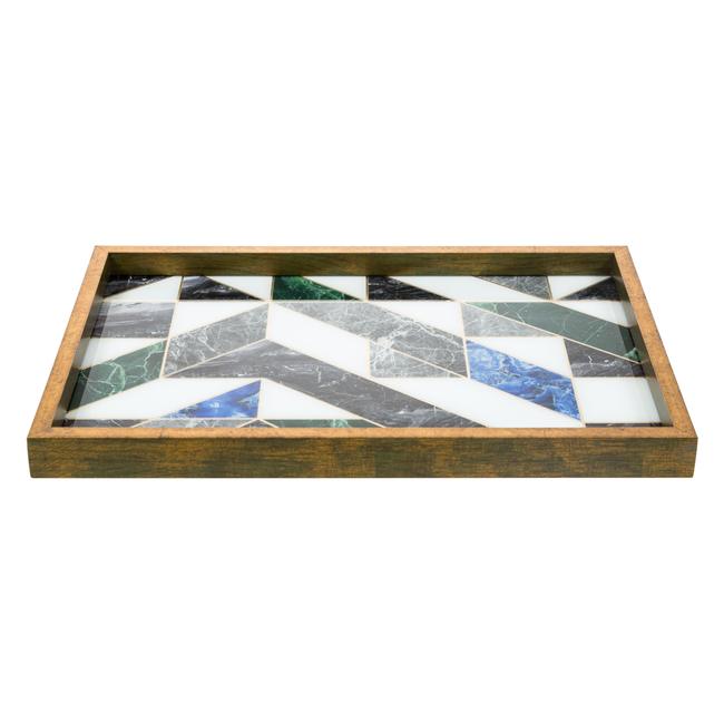 Dekoratif tepsiler ile dekorasyonda Mudo dokunuşu! Keskin geometrik desenleri modern çizgilerle tasarımında barındıran Beryl Dekoratif Tepsi, tabanı polyesterden üretilen ürünün iki farklı ölçü seçeneği olup, üzerindeki cam kaplamasıyla dikkat çekiyor.