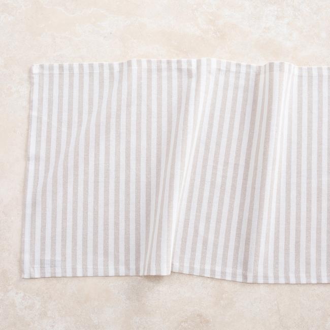 Nötr renk geçişlerine sahip olan düzgün çizgili deseni, hem modern hem de zamansız bir görünüm sunarak mevcut dekorasyon unsurlarınızla zahmetsizce bütünleşir. Doğal dokusu, ürüne görsel bir zenginlik ve dokunsal bir his katarken, özenle tamamlanmış temiz kenar dikişleri ürünün kalitesini vurgular. Günlük kullanımda pratik bir şıklık sunar, özel davetlerde sofra düzeninize sofistike bir temel oluşturur. Sade tasarımı sayesinde farklı renklerdeki tabak takımları veya dekoratif aksesuarlarla rahatlıkla kombinlenerek kişisel zevkinizi yansıtmanızı sağlar.