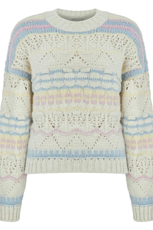 BİSİKLET YAKA AJURLU ÖRGÜ KAZAK