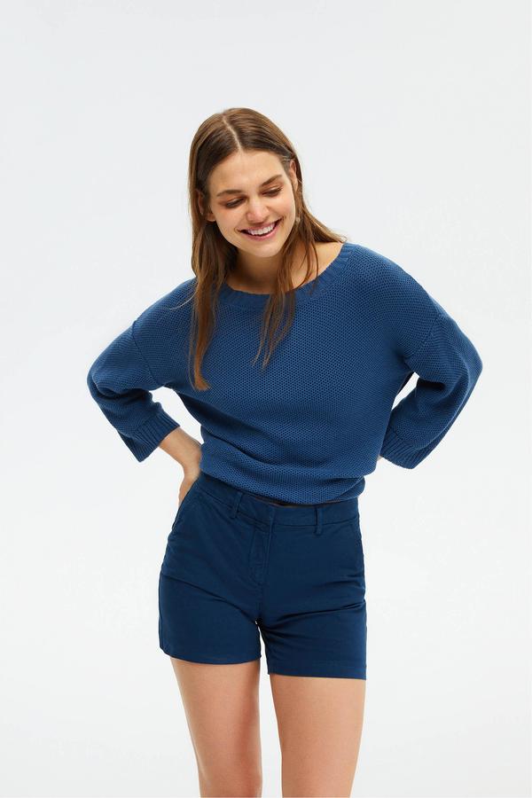 Triko rahatlığı ile ilkbahar ve sonbahar aylarının tadını çıkar. Mavi, ince triko kazak ile ofis ve günlük şıklığı yeniden yorumla. Cigarette pantolon, bol paça pantolonlarla birlikte kombinleyebileceğin triko kazağı içine giyeceğin beyaz gömlekle tamamlayabilirsin. Serin ilkbahar ve yaz akşamlarında şort ve kot etekle tamamlayabileceğin kombini spor ayakkabılarla spor şıklığı kombinlerine yansıtabilirsin.