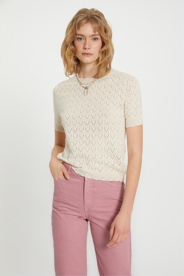 Kısa kollu triko modelleri ile ofis şıklığı Mudo'da. Farklı renk seçenekleriyle beğenine sunulan, ajurlu sade tasarımıyla öne çıkan kısa kollu trikoyu carrot pantolonlar ve non denim pantolon modelleriyle kombinleyebilir, fularlar ile tarzına hareket katabilirsin.