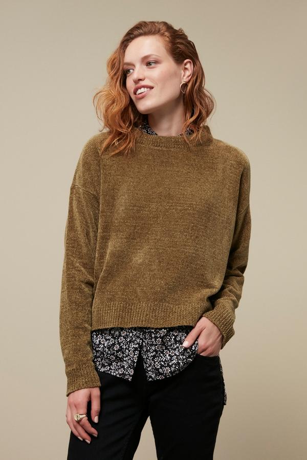 BİSİKLET YAKA ŞÖNİL DOKULU KAZAK