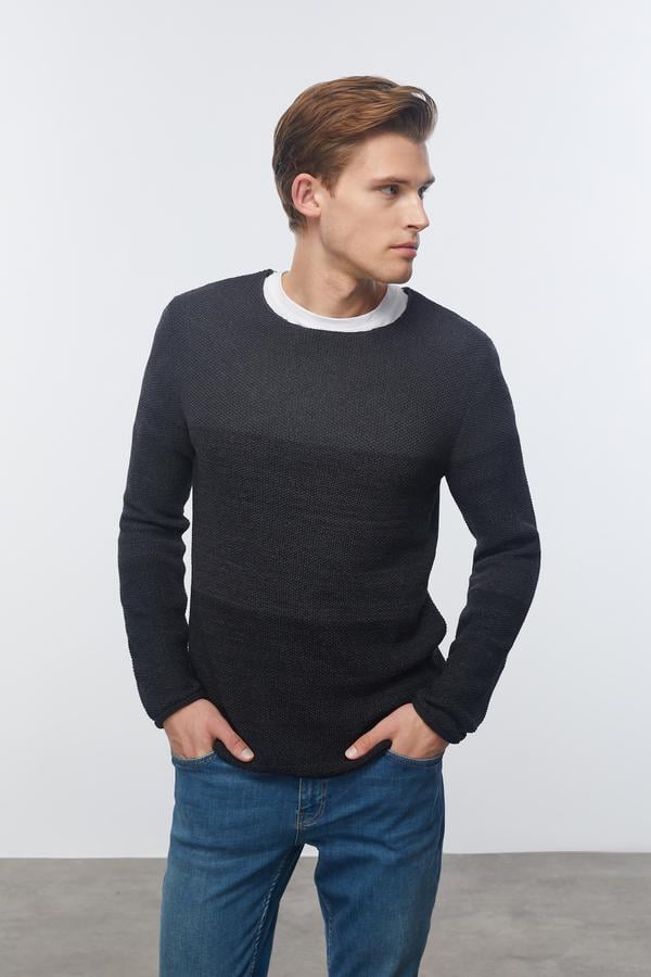 Geri dönüştürülmüş pamuk ve polyesterden üretilen erkek tirko kazak stilinde sonbahar! İplikleriyle renk geçişlerini tasarımında barındıran bisiklet yaka triko kazak jean şıklığına çabasız ve şık bir dokunuş katacak.