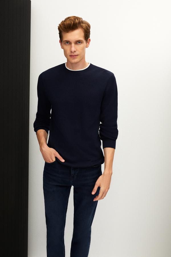 Erkek triko kazak modelleri Mudo'da.%100 pamuk kumaştan üretilen bisiklet yaka triko kazak, cildinin nefes almasını sağlayacak. Her ortama uygun kombinlerine dahil edebileceğin bisiklet yaka pamuklu kazak ile kış konforunu keşfet.