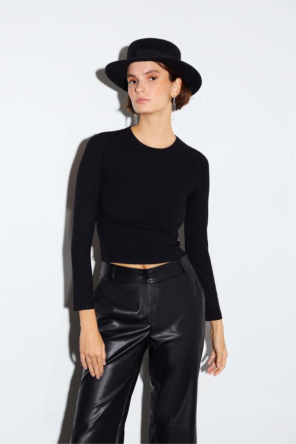 BİSİKLET YAKA UZUN KOLLU BLUZ