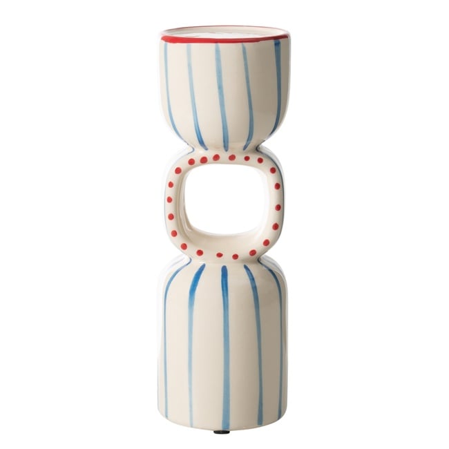 Dekorasyonda sadelik, ince bir detayla birleştiğinde unutulmaz bir karaktere bürünür. Blue Line Mumluk, 10x10x32 cm boyutlarındaki dikey formu ve üzerinde taşıdığı asil mavi çizgi detayıyla, modern mekanlara rafine bir ışık oyunu taşıyor. 32 cm'lik yüksekliği ile yemek masalarında, dresuarlarda veya niş alanlarda etkileyici bir dikey vurgu yaratır. İnce yapısı, mekanın ferahlık algısını bozmadan sofistike bir yükseklik katar. Klasik şeffaf mumlukların ötesine geçen "Blue Line" serisi, minimalist çizgileriyle çağdaş sanatın yalınlığını dekorasyonunuza taşır.