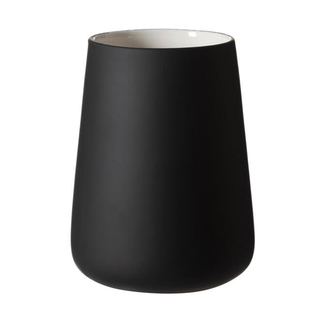 Boho diş fırçalık siyah, sade ve modern bir banyo dekorasyonu arayanlar için tasarlanmıştır. Minimalist çizgileriyle banyolarda düzenli ve şık bir atmosfer oluşturur. Konik formu ve mat siyah dış yüzeyiyle öne çıkan bu ürün, banyonuza modern bir dokunuş kazandırır. Parlak beyaz iç yüzey, dış kısmın koyu tonuyla kontrast oluşturarak tasarımın sade hatlarını vurgular. Yumuşak geçişlere sahip hatları, hem elde tutmayı kolaylaştırır hem de banyoda bütünlük sağlar.