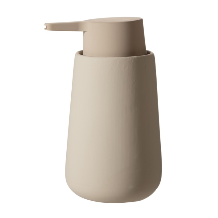 Yuvarlak hatlara sahip tasarımı, elinize rahatça oturmasını sağlarken, mat yüzey dokusu ile modern ve doğal bir görünüm sunar. Tek renk bütünlüğü ve minimalist pompa başlığı, ürünün genel tasarımını tamamlayarak sade bir şıklık sağlar. Fazla detaydan uzak durarak fonksiyonelliği ve estetiği bir arada sunan bu sabunluk, minimalist banyo veya mutfak dekorasyonunda bütünlük sağlamak isteyenler için tamamlayıcı bir üründür.