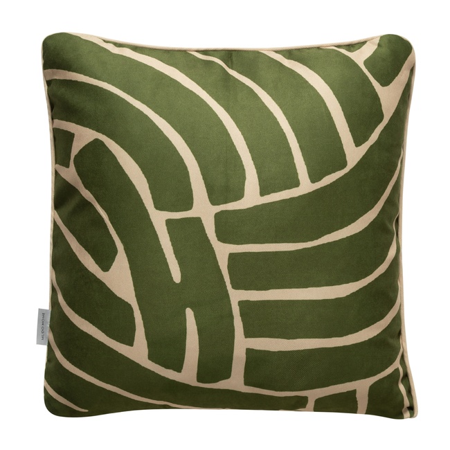 Kırlentin ön yüzeyinde yer alan belirgin geometrik desenler, mekâna hareket kazandırırken abartıdan uzak bir şıklık sunar. Yeşil ve bej renk kombinasyonu, doğadan ilham alan bir sıcaklık ve huzur duygusu yaratır. Düz dikişli kenar detayları ise ürünün modern çizgisini vurgular. Doğal ve hafif dokulu kumaş izlenimi veren yüzeyi, kırlentin hem görsel hem de dokunsal olarak konforlu bir kullanım sunmasını sağlar. Bu özellik, ürünü hem oturma odası hem de yatak odası gibi farklı alanlarda rahatlıkla kullanabileceğiniz çok yönlü bir dekoratif parça haline getirir.