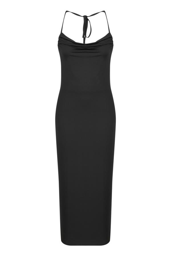 BOYUNDAN BAĞLAMALI MAXI ELBİSE