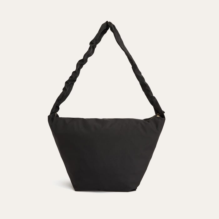 Büzgülü askı detayı çantaya özgün bir karakter kazandırırken, pürüzsüz ve mat dokusu modern bir his verir. Geniş ağız açıklığı sayesinde günlük eşyalarınıza kolayca erişebilir, düzenli bir şekilde taşıyabilirsiniz. Altın rengi fermuar detayı ise tasarıma zarif bir dokunuş ekler. Hem omuzda hem de elde rahatça taşınabilen bu model, pratikliği ve estetiği bir arada arayanlar için uygundur.