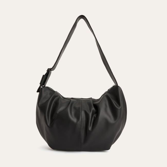 Şıklığı ve modernliği bir araya getiren büzgülü deri görünümlü el çantası, minimalist tasarımıyla stilinizi tamamlar. Pürüzsüz ve yumuşak yüzeyi, kaliteli bir his sunarken, büzgülü kapanış detayı çantaya özgün bir karakter kazandırır. Siyah rengi ve gümüş rengi fermuar detayı, şehirli ve modern bir görünüm oluşturur.