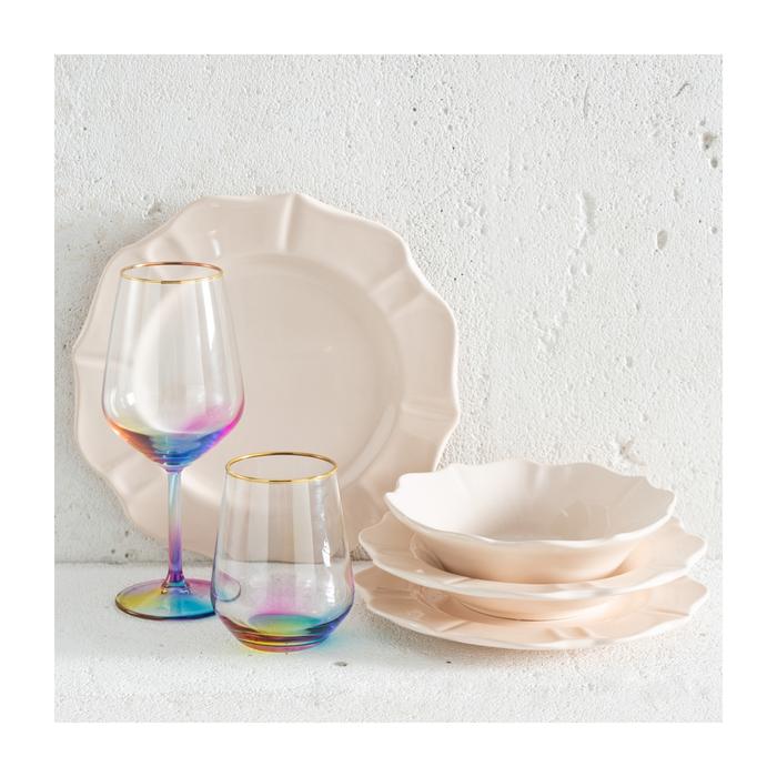 Ürün Ölçüleri : Çukur Tabak 21 cm, Pasta Tabağı 23 cm, Kase 18 cm, Servis Tabağı 26 cm , Kadeh 490 ml, Meşrubat Bardağı 425 ml dir.
