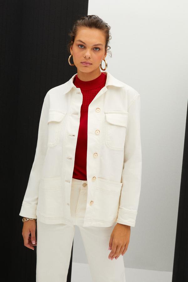 Zamansız kombinlerinin başrolünü üstelenecek kadın ceket gömlek modelleri Mudo'da. Tişörtler ile sonbaharda kombinleyebileceğin kadın beyaz casual ceket, serin yaz akşamlarında da seninle olacak.