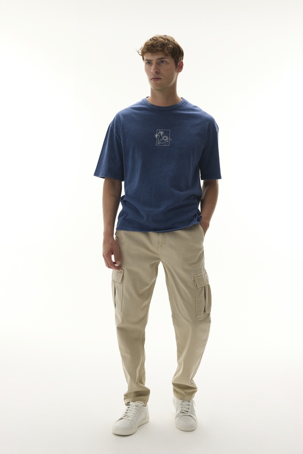 Sokak stili şıklıkla bir araya gelerek gardırobuna taşınıyor. Cepli kargo pantolon ile günlük stilini tamamlarken, rahat kumaşı ve kesimi sayesinde hareket özgürlüğünü de beraberinde getirecek. Cepleri fonksiyonel bir kullanım sunarken, beli bağlamalı tasarımı konforunuzu bir üst seviyeye çıkaracak. Pamuklu kumaşı ile cildinize nefes aldıracak kargo pantolonu ister resort yaka gömleklerle, ister baskılı bisiklet yaka tişörtlerle kombinleyebilirsiniz.
