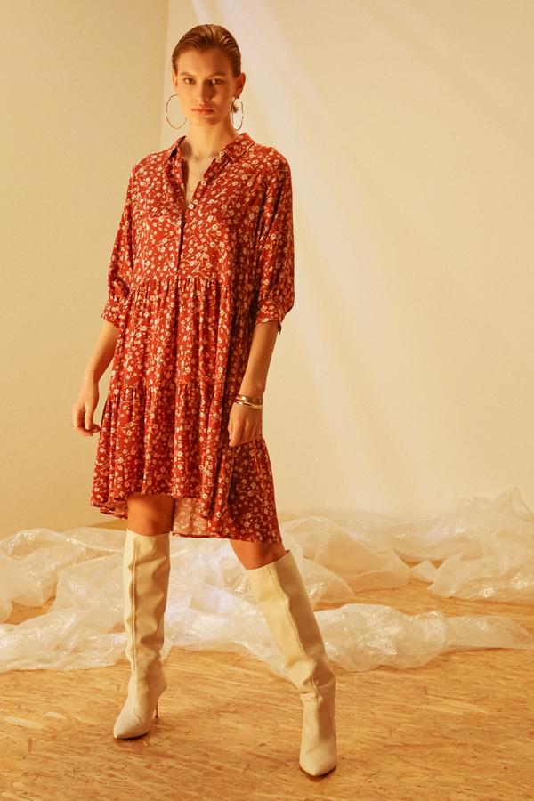 ÇİÇEK DESENLİ MİNİ KLOŞ ELBİSE