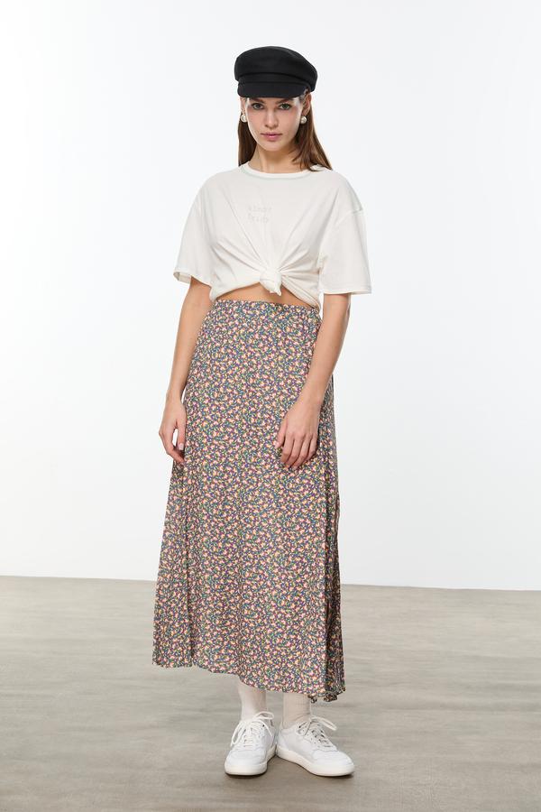 ÇİÇEK DESENLİ YIRTMAÇLI UZUN ETEK