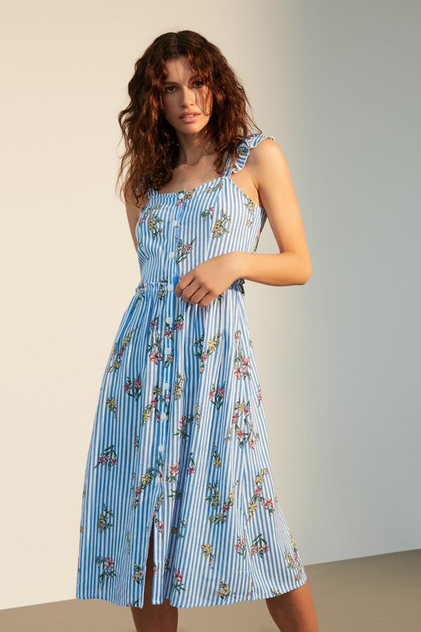 ÇİÇEKLİ ASKILI MİDİ ELBİSE