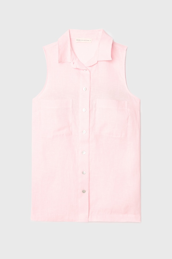 ÇİFT CEPLİ KOLSUZ KETEN GÖMLEK