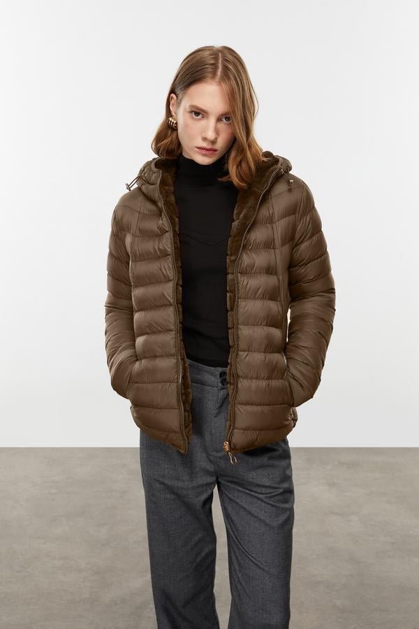 Mudo kapüşonlu kadın mont modelleri ile ister pelüş ister kapitoneli! Çift taraflı kullanılabilen modeli, pelüş mont olarak şık kombinlerine dahil edebilir ya da spor kombinlerinde puffer mont olarak kullanabilirsin.