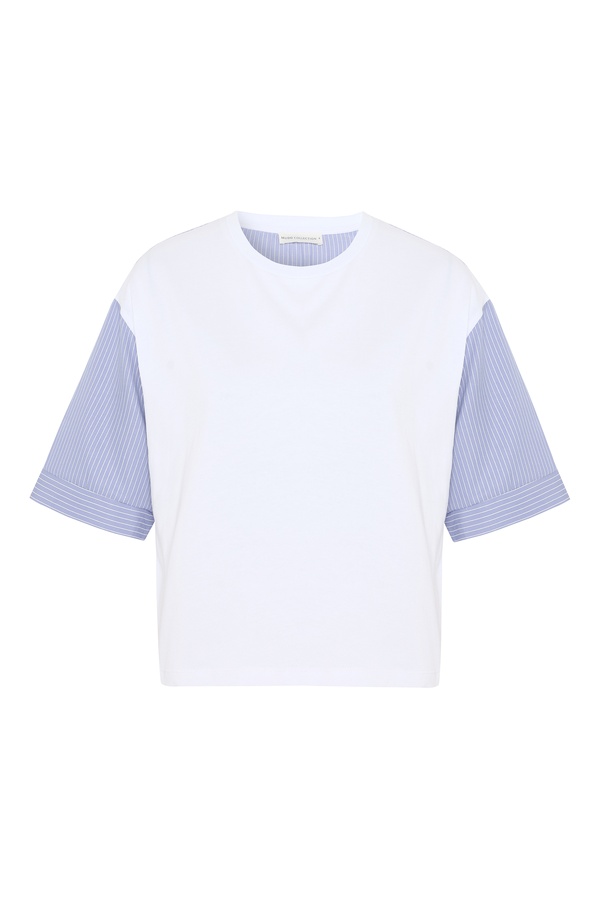 ÇİZGİ DETAYLI BİSİKLET YAKA T-SHIRT