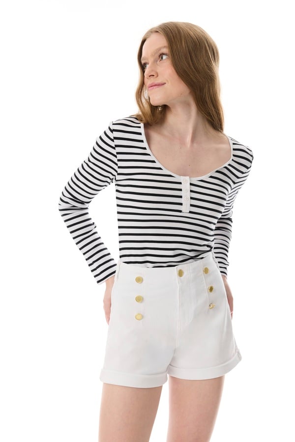 ÇİZGİLİ AÇIK YAKA UZUN KOLLU T-SHIRT
